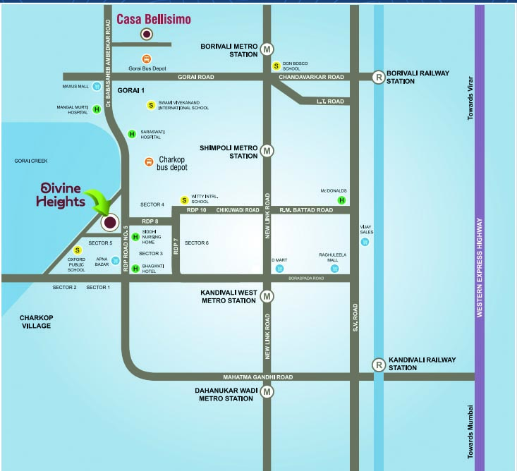 DIVINE HEIGHTS holds a strategic core position in Charkop, Kandivali. As a centralized asset, it guarantees seamless transit throughout the city. Furthermore, all essential urban necessities—elite schools, hospitals, markets, and entertainment—are situated just moments from your new home.